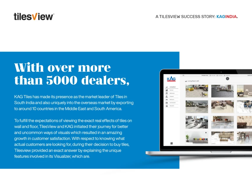 Amb l’ajuda d’aquestes funcions extraordinàries, Kag ha aconseguit avançar amb nous usuaris a tota l’Índia i a l’estranger. KAG és un dels majors fabricants de rajoles de paret i terra de l'Índia que ha estat al mercat durant els darrers 25 anys, amb més de 2500 dissenys de rajoles i 100 sales d'exposició exclusives.